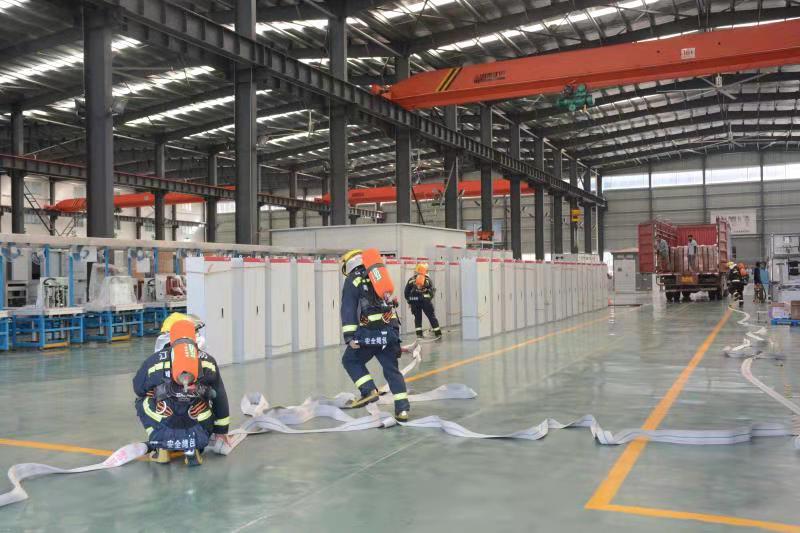 接下來消防隊長組織官兵進行消防實戰(zhàn)演練。演練前期,隊長根據我司地理位置及實際情況認真細致的分析制定出了此次消防應急滅火演練方案,進一步明確了各應急小組的職責要求,為演練的成功舉行提供了有力的保障。伴隨著兩輛消防車駛入公司,拉開了“飛宇電器消防演習”的帷幕。本次演習的項目是利用公司內部的消防栓及車上的水源,通過消防水帶的鋪設,達到定點滅火的目的。它對距離較長,突發(fā)迅猛的火災有良好的撲救效果。消防官兵們一切行動聽指揮,動作干脆利落,專業(yè)嫻熟,為大家上了一場生動的消防課程。
