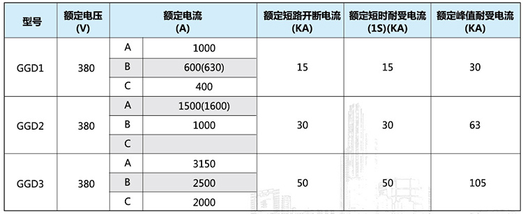 GGD型低壓成套開關(guān)設(shè)備可廣泛地應(yīng)用在發(fā)電廠、變電站、石油化工和住宅小區(qū)等場(chǎng)所,作為交流(50-60)Hz,額定工作電壓380V,額定電流至3150A的配電系統(tǒng),作為動(dòng)力、照明及配電設(shè)備的電能轉(zhuǎn)換、分配和控制中使用。